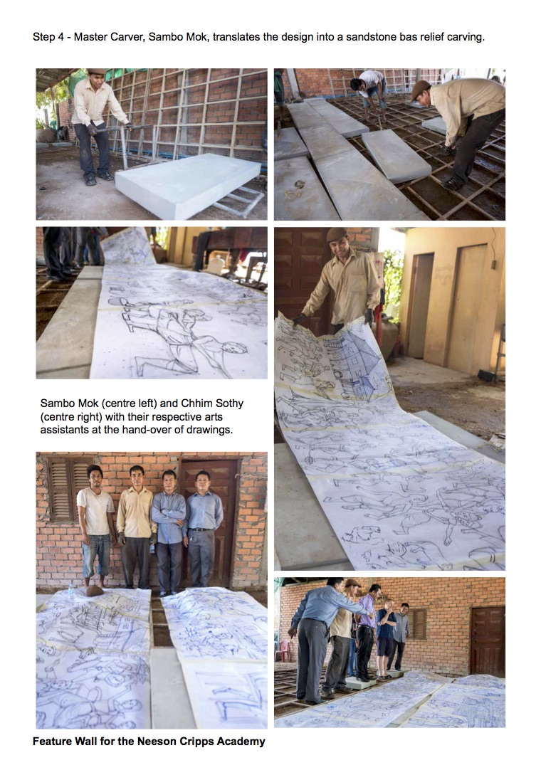Outcome: Worked with Cambodian artist Chimm Sothy and Mom\k Sambo to create an intergenerational project resulting in an 18 sqm sandstone bas-relief carving.